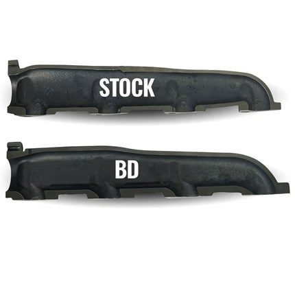 The 6.4L manifold set is crafted with a heavy duty 0.25" thick-walled Hi-Silicon ductile casting, this makes these manifolds thicker to combat cracking due to high exhaust temperatures. BD's exhaust manifold set is the perfect replacement for reliability and peace of mind.