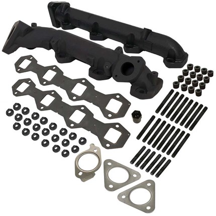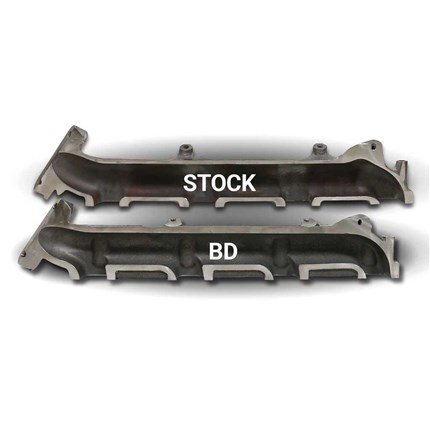 BD focused on solving one of the Ford 6.7L common failures, the exhaust manifolds. Crafted with a heavy duty 0.275" thick-walled Hi-Silicon ductile casting, this makes these manifolds 75% thicker to combat cracking due to high exhaust temperatures. Thermal durability has been improved with longer exhaust studs and spacers plus thicker, more durable machined bolting flanges. Fully EGR compatible, BD's exhaust manifold set is the perfect replacement for reliability and peace of mind.