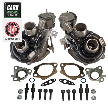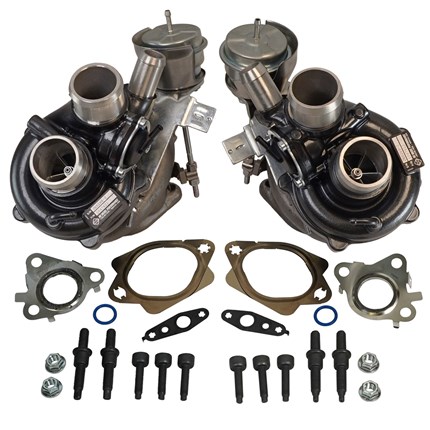 A pair of drop-in, stock installation, stock appearing replacement turbochargers that are anything but stock! The larger compressor wheel optimizes air flow while decreasing drive pressures and lowering EGT's.