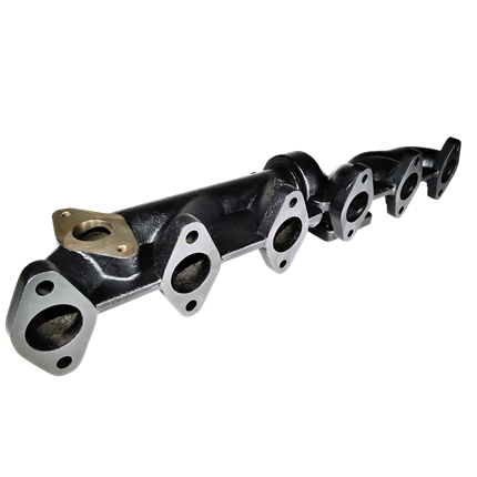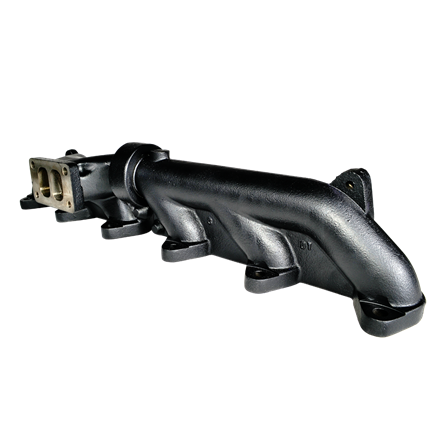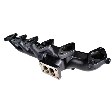 2003-07.5 5.9L CUMMINS 2-PIECE PULSE FLOW EXHAUST MANIFOLD KIT, T-3 TURBO FLANGE, FRONT WASTEGATED, CERAMIC COATED BLACK