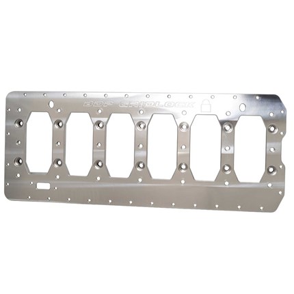 After giving it some thought, why does it need to be a tough tool steel anyway? A girdle system is there to tie the main caps together in order to help prevent main cap walk as well as tie each side of the block together. All of these forces are tensile forces. While tool steels can have 2 times or more tensile strength, the overall thickness of the gridlock girdle more than makes up for the difference. Other girdles on the market are only around .300 of an inch thick, less than half that of our gridlock girdle. This gives the gridlock girdle more than TWICE the tensile strength as the leading competition’s girdle, all this while weighing less. By using pressed in steel inserts at the main studs, we prevent the main stud nuts from compressing the softer aluminum as well as locking the mains in place with a built in locating dowel in those inserts. The girdle is also O-ringed for a perfect seal to the block surface.
