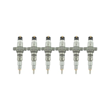 This is an all in one injector kit for your 2004.5-2007 5.9L Cummins! This kit includes SIX of our Stock Reman injectors and SIX Bosch connecting tubes. The Industrial Injection Stock Reman Injectors are a perfect replacement injector for someone looking for increased reliabilty. We balance the injectors to a tighter tolerance than the original manufacturer and have put a lot of time into making these the best injectors money can buy. All the injectors we build in house are built with BRAND NEW Factory OEM parts including the nozzles.