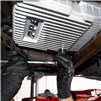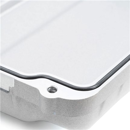 Cast aluminum is superior to the stock stamped steel for cooling transmission fluid. PPE has engineered deep exterior fins that increase surface area and take advantage of underside air flow to dissipate heat far better than stock. Cast gussets provide strength and rigidity to the housing. Even the drain plug has been upgraded. The exclusive high-power Neodymium magnet-equipped, billet, hardened stainless steel drain plug attracts and holds ferrous metals from the fluid before they do damage. The factory plug has no magnet and provides no protection.