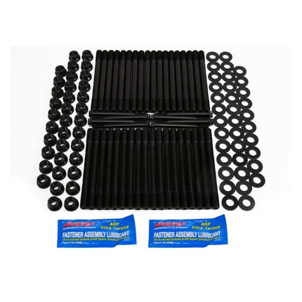 Part Type: Cylinder Head FastenersProduct Line: ARP Pro Series Cylinder Head Stud KitsFastener Style: StudHead Style: 12-pointFastener Material: ARP2000Fastener Finish: Black oxideWashers Included: YesCut to Fit: NoQuantity: Sold as a kit.ARP cylinder head studs are the clear favorite among top professional engine builders in nearly every form of motor sports. ARP uses a premium grade 8740 alloy that is rated superior to aircraft quality. Then each stud is specially heat treated in a vertical fixture that insures complete heat penetration. After heat treating the studs are centerless ground for precise concentricity, and then the threads are rolled which gives them ten times better fatigue strength than competitor's studs. It costs more to do it this way and it is very hard on the tooling but the results are well worth the extra expense. ARP stud kits are available for almost every domestic and import application and you just won't find a better product on the market from any other source.Includes 12-point nuts