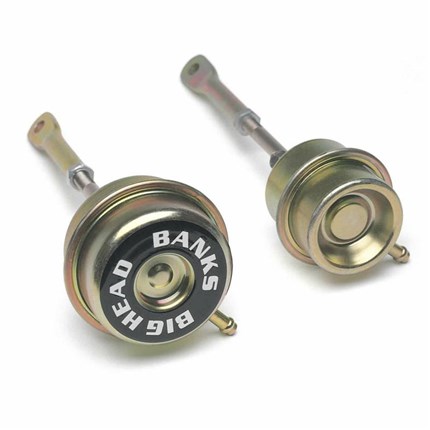 When turbo exhaust backpressure increases, the stock actuator prematurely blows off the seat, softening boost in the midrange and killing torque. With twice the diaphragm area and spring pressure of the stock wastegate, Banks BigHead Wastegate Actuator keeps the valve seated longer and achieves a higher peak boost, sooner. At peak, BigHead opens the wastegate and holds its position, for precise boost control that gives you crisp acceleration and more mid-range pulling power.