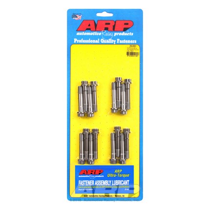 Material: ARP2000Pro Series Wave Loc BoltsFor the most severe applications, in conjunction with aftermarket I-beam rods, ARP has developed the "Pro" Series Wave-Loc bolts. These ultra heavy-Duty rod bolts are made from a special material designated ARP2000. It has approximately 200% the fatigue life of 8740 chrome moly steel and has a tensile strength of about 220,000 psi, and is capable of more than 12,000 lbs. clamping force.TECH NOTE: ROD BOLTSUnquestionably the most important fasteners in any engine are the connecting rod bolts, as they hold the key to the entire rotating assembly. A broken bolt will lead to a catastrophic engine failure. As you can imagine, the most critical joint is where the connecting rod halves mate. The rod bolts must support the primary tension loads caused by each rotation (or cycle) of the crankshaft. When the crank rotates, the big end of the connecting rod essentially becomes oval-shaped and the rod bolts bend. As the crankshaft continues to rotate, the rod becomes round again. With alternating tension loads and cyclic bending of the bolts, it is very important to install fasteners that are able to exert a clamping force greater than the load imposed upon the join (tension).In addition to utilizing a rod bolt with sufficient strength to withstand the tremendous cyclical strains placed upon it, it is absolutely imperative that the bolts be properly tightened. The preferred method of monitoring the correct amount of tension is through use of a stretch gauge. This is far more accurate than using a torque wrench. Moreover, through subsequently checking the rod bolts length at teardowns, it is possible to determine if it has been stressed beyond safe limits and must be replaced.