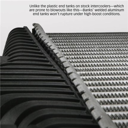 Techni-Cooler dramatically increases the cooling capacity by balancing the richer fuel mixture with greater airflow and cooler, denser air. Denser air has more oxygen, which improves& combustion as well as engine efficiency. Result: Higher continuous power and more power at any exhaust gas temp (EGT)better fuel economy and lower EGTs. That's a truckload of benefits! Banks Techni-Cooler delivers the maximum reduction in boost air temperature with a minimal loss of boost pressure. It doesn't get any cooler than Techni-Cooler! Mounting hardware included.