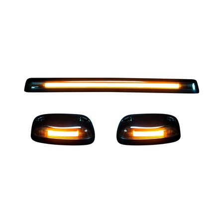 Recon GMC & Chevy 2007-2014 (2nd GEN Body Style) Heavy-Duty (3-Piece Set) Smoked Cab Roof Light Lens with Amber High-Power OLED Bar-Style LED's - (Complete Wiring Kit Sold Separately)