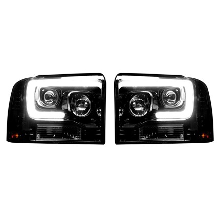 Product Name: Recon Projector Headlights - Ford SuperDuty 2005-2007 F250/F350/F450/F550 PROJECTOR HEADLIGHTS w/ Ultra High Power Smooth OLED HALOS & DRL - Smoked / Black