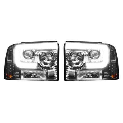 Recon Ford Super Duty 05-07 F250/350/450/550 Projector Headlights OLED Halos DRL Clear/Chrome