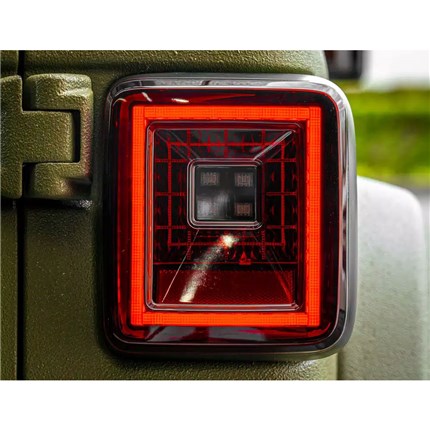 Add the Recon 264237LEDRBK Red Smoked LED Taillights onto your 2018-2024 Jeep Wrangler JL. These taillights replace the factory OEM LED taillights, featuring a red smoked lens for a sleek and stylish look. With OLED technology, they provide superior illumination with red brake and running lights for enhanced visibility and red scanning turn signals for eye-catching signaling. Installation is easy, fitting seamlessly into your Wrangler. These durable taillights are resistant to water, dust, and UV rays, ensuring long-lasting performance on and off the road. Elevate your driving experience with the Recon 264237LEDRBK Red Smoked LED Taillights, combining style, safety, and durability in one impressive package.