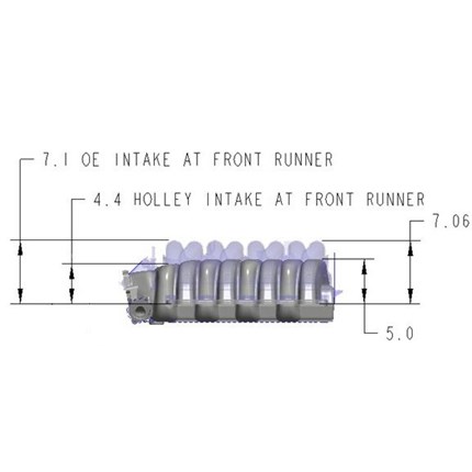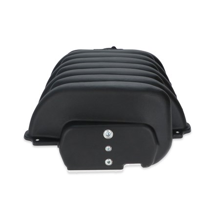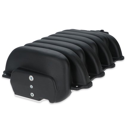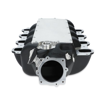 Holley's low-profile intake manifold for Ford's 7.3L "Godzilla" engine, when paired with a 20-340/20-340BK oil pan and accessory drive kit, allows for easy installation into vintage vehicles, kit cars, and other space-restricted applications while retaining the factory hood. The design focus for this manifold was equal cylinder distribution and great street manners. This low-profile intake manifold offers a much cleaner alternative to the original plastic intake, provides anywhere from 2 to 3.5-inches of additional clearance, corrects the OE throttle body angle by 55 degrees, and increases the opening to 92mm. With three throttle body options, sturdy cast aluminum construction, a removable lower panel, and long runners to maintain the 7.3-liter's already substantial torque offering, this is a must-have for any "Godzilla" project.