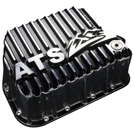 Increase the oil capacity in your transmission using ATS Diesel Performance automatic transmission pans. The additional fluid capacity is designed to help keep the transmission running cooler. Heat is the number-one enemy of a transmission, and the cooler it runs, the longer it lasts! The pans feature a finned design and magnetic drain plug and are tapped for a temperature probe. All ATS Diesel Performance automatic transmission pans are powdercoated black with a machined ATS logo and fins.