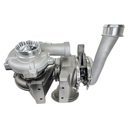 Product Name: KC Fusion Compound Turbos- (Stage 1 High Pressure & Stage 1 Low Pressure Turbos) - 6.4L Powerstroke Manufacturer: KC Turbos Manufacturer Part #: 302446 Thoroughbred Diesel Part #: KCT302446 Fitment Notes: 2008-2010 Ford Powerstroke 6.4L
