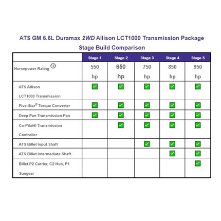 ATS GM 6.6L Duramax 2WD Allison LCT1000 Transmission Package Stage Build Comparison