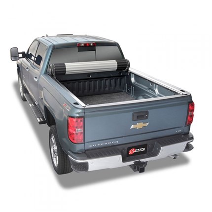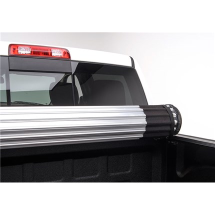 The BAK Revolver X2, featuring exclusive automatic rotational locking rails that secure the cover the entire length of the bed on each side. This hard aluminum roll-up cover easily rolls up with one-handed operation and allows use of every inch of the truck bed without blocking your rear window. This cover does it all with unrivaled strength, security and style.