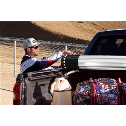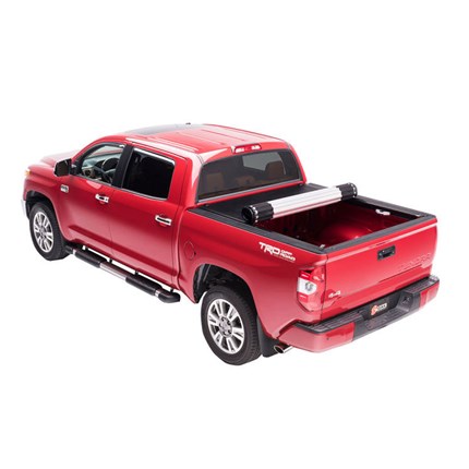 The BAK Revolver X2, featuring exclusive automatic rotational locking rails that secure the cover the entire length of the bed on each side. This hard aluminum roll-up cover easily rolls up with one-handed operation and allows use of every inch of the truck bed without blocking your rear window. This cover does it all with unrivaled strength, security and style.