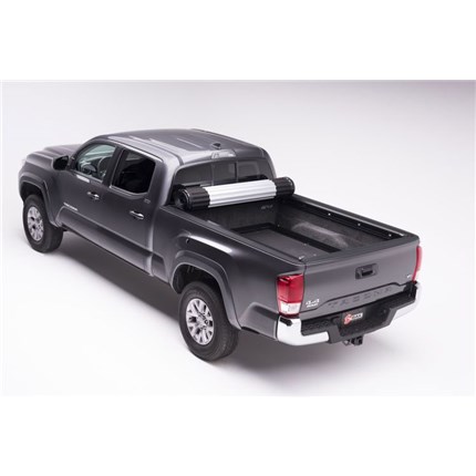 The BAK Revolver X2, featuring exclusive automatic rotational locking rails that secure the cover the entire length of the bed on each side. This hard aluminum roll-up cover easily rolls up with one-handed operation and allows use of every inch of the truck bed without blocking your rear window. This cover does it all with unrivaled strength, security and style.