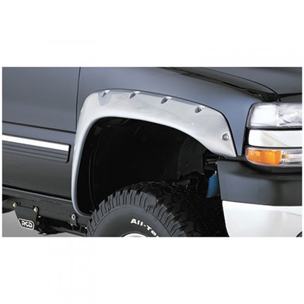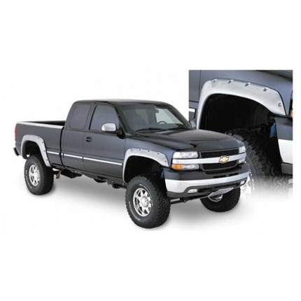 The Bushwacker 40051-02 Front Cut-Out Fender Flares for your 2001-2007 GM Silverado/Sierra 2500HD/3500HD are designed to maximize off-road wheel travel and maintain adequate tire coverage. That custom approach means a smoother appearance, greater strength, andeasier bolt-on installation with tough stainless steel hardware. As the name says, Cut-Out Fender Flares require cutting body sheet metal to achieve maximum articulation and coverage for oversized tires.