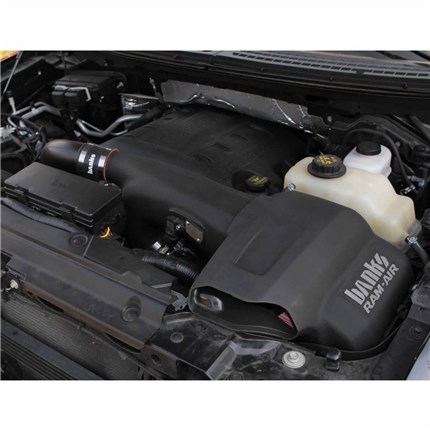 Banks opens up your truck's breathing with a flowbench-developed and dyno-proven Ram-Air Intake System that is 64.6% less restrictive than stock on the 3.5L at 600 CFM. Ram-Air's filter has a huge outlet with deep filter pleats that maximize flow and a complete air filter housing that draws in cooler, denser air to the engine for greater power and fuel economy.