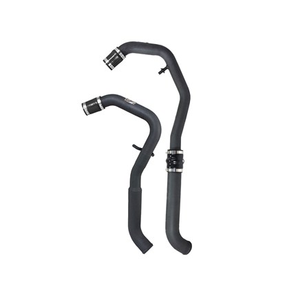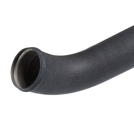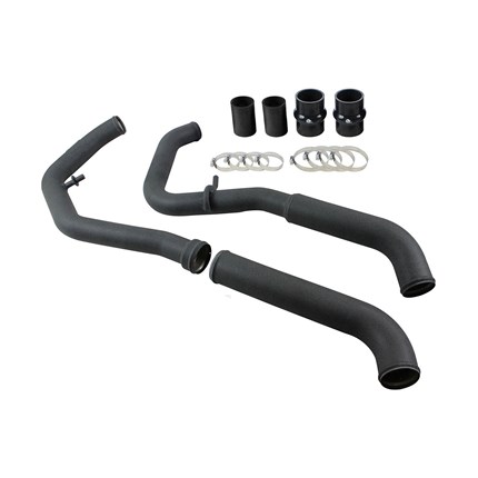 Flow and Performance: Constructed of 2" into 2-1/2" mandrel-bent aluminum tubing for maximum flow then powder-coated wrinkle-black for heat and corrosion resistance. The smooth transition bends decrease turbulence and minimize pressure loss, while increasing horsepower and torque. Installs on the Hot-Side to transfer heated air smoothly to the intercooler to accelerate heat transfer for better performance.
