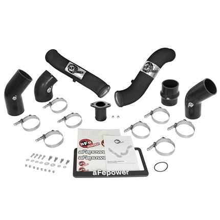 Flow and Performance: aFe Power's intercooler tubes are constructed from 3" mandrel-bent aluminum tubing for maximum flow then, powder-coated for a nice finish. The high-temp wrinkle-black powder-coating also insulates the tube from engine heat and protects the tube from corrosion. The smooth transition bends decrease turbulence, minimize pressure loss, while increasing horsepower and torque. Also included are four 1/8" NPT port which allow for the addition of optional sensors or water-methanol injection.