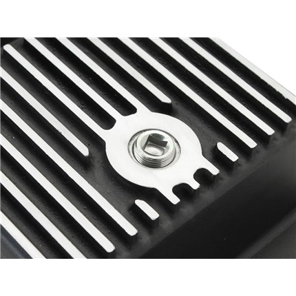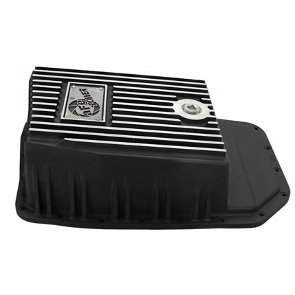 aFe POWER Pro Series deep transmission pan brings performance engineering and protection to your vehicle. This transmission pan adds an additional 7 quarts over stock and offers both internal and external heat fins to transfer heat from the fluid to the ambient air temperature for maximum cooling. This transmission pan is constructed out of durable A380 aluminum with reinforced ribs for maximum strength. This pan also features a black, powder-coated finish with machined fins for protection and styling.
