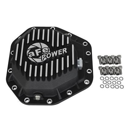 aFe Power's new rear differential cover brings performance engineering to the protection of your axle's differential. This differential cover is constructed out of durable A356-T6 cast aluminum with reinforcing ribs for maximum strength. Mounting hardware is included for a hassle-free installation. An oil level sight glass and calibration plug set to the factory level prevents overfilling of the differential. A magnetic drain plug and a deep reach magnetic fill plug are provided for maximum protection. This cover is finished with black powder-coating and machined fins for a distinctive look.