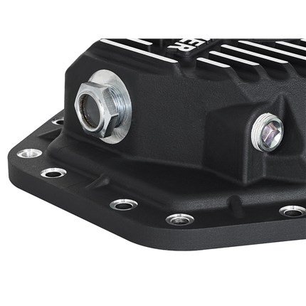 aFe Power's new rear differential cover brings performance engineering to the protection of your axle's differential. This differential cover is constructed out of durable A356-T6 cast aluminum with reinforcing ribs for maximum strength. Mounting hardware is included for a hassle-free installation. An oil level sight glass and calibration plug set to the factory level prevents overfilling of the differential. A magnetic drain plug and a deep reach magnetic fill plug are provided for maximum protection. This cover is finished with black powder-coating and machined fins for a distinctive look.