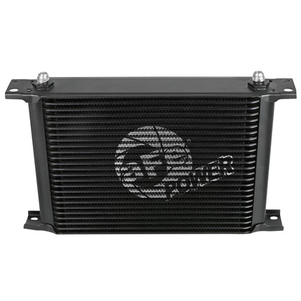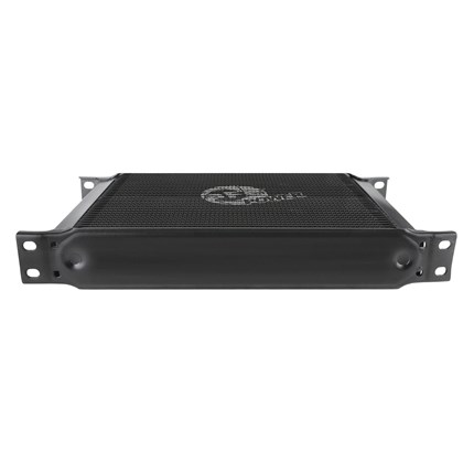 Stacked Plate Design: This BladeRunner Oil Cooler uses a durable brazed 25-row all-aluminum stacked plate construction that allows for greater efficiency and lower pressure drop than a standard tube-fin design.