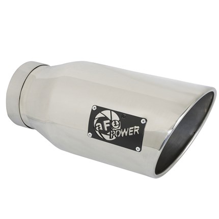 7 IN Diameter Polished Exhaust Tip: Finishing off this exhaust system is a 7 IN diameter polished stainless steel clamp-on exhaust tip. The tip features an aFe POWER logo plate riveted on for a unique style.