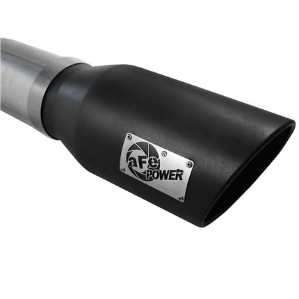 Massive 7" Black Tip: Finishing off the exhaust is a powder-coated black 304 stainless steel exhaust tip. This tip features a drain port on the bottom to keep rust and corrosion away. A unique stainless steel laser-cut aFe Power logo plate is riveted on for an aggressive style.