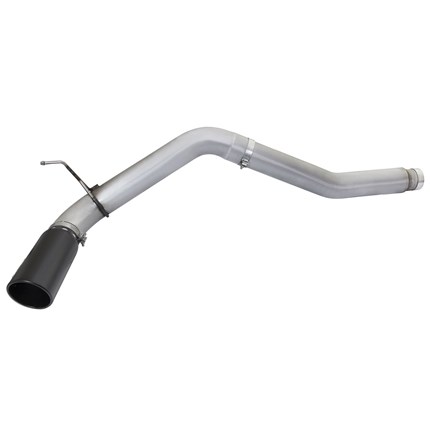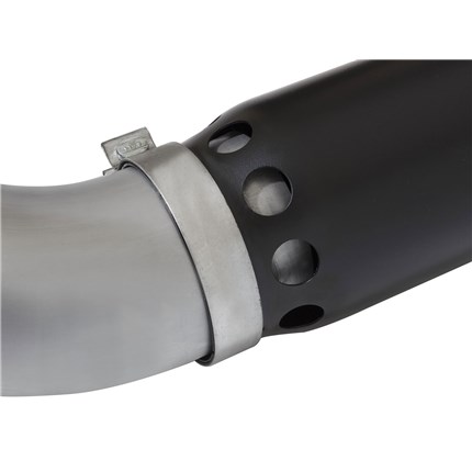 6" Diameter Black Intercooled Tip: Finishing off the exhaust is a 6" diameter, black, stainless steel slash cut tip with intercooling vents designed to reduce exhaust gas temperatures at the tailpipe. A unique stainless steel laser-cut aFe Power logo plate is riveted on for an aggressive style.