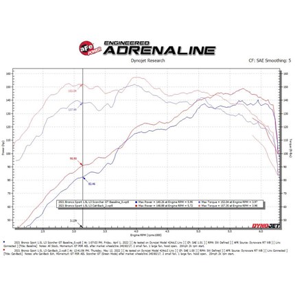 Performance Gains: This system produced gains of up to +8 HP and +15 lbs. x Ft. TQ., as measured on our in-house dyno.