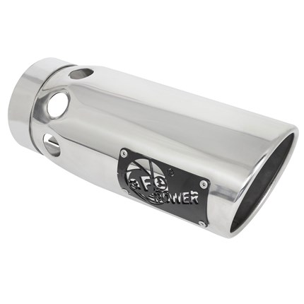 6" Diameter Polished Intercooled Exhaust Tip: Finishing off this exhaust system is a 6" diameter polished 304 stainless steel intercooled clamp-on exhaust tip. The tip features an aFe POWER logo plate riveted on for a unique style.