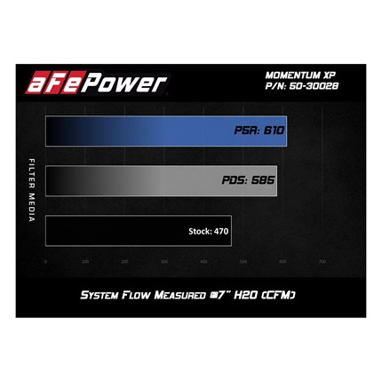 Large 5-Layer Performance Air Filter: This Momentum XP intake system was designed around the largest filter possible to allow maximum performance and filtration. Its unique filter-to-housing interface (US PAT 9440175) not only makes for a simple installation, but also allows for a large inverted 3.8”x 9" air filter. The filter’s Pro 5R media features five progressively finer porosity cotton gauze layers that provide maximum airflow and performance.