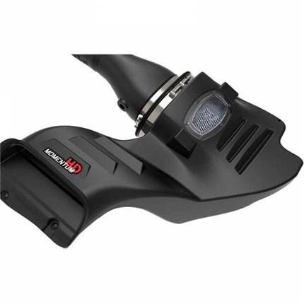 This Momentum HD intake system was designed around the largest filter possible to allow maximum performance and filtration. This filter has a (7" x 4-3/4�) oval flange and is 9" tall and features our non-oiled Pro DRY S media. The Pro DRY S performance air filter features 3-layers of progressively finer porosity synthetic media that does not require oil providing maximum convenience. The unique air filter to housing interface (US PAT 9440175) allows for maximum filter size, which increases the available air volume while simplifying the installation process. The air filter is wrapped in reinforced metal providing maximum strength to prevent filter collapse.