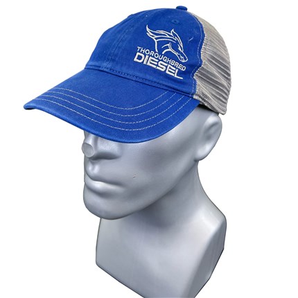 Garment Washed Snapback Dad Hat. Single Stitch Silver Thoroughbred Diesel Logo. This garment-washed, mesh back trucker cap is all about comfort and fit. A relaxed look makes it ideal for any activity, or doing nothing at all.
