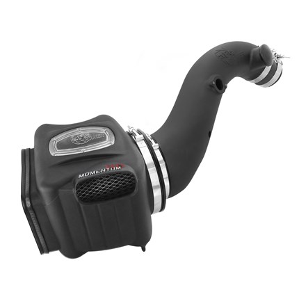 Bringing you the next generation of intakes, the Momentum HD sealed air intake system is designed using the most up-to-date engineering tools and techniques to provide you with the perfect blend of power and protection. This intake system is superior in every way. From the one-piece sealed housing to the massive Pro DRY S air filter and premium hardware, we spared no expense to give you the best intake on the market.Unique One-Piece Housing: The smooth one-piece sealed housing with auxiliary air scoop is used to eliminate the use of multiple-piece housings and ensure the coolest air intake charge available. A urethane plug is also included for those cold weather applications where you want to block the auxiliary air scoop. A large, stainless steel plate is used for an aggressive style.Huge PRO Dry S Performance Air Filter: The Momentum HD is designed around a massive Pro DRY S performance 360 degree radial flow air filter with 3-layers of progressive synthetic media providing 99.2% cumulative efficiency. The unique air filter to housing interface (patent pending) allows for maximum filter size which increases the available air volume while simplifying the installation process. The air filter is wrapped in reinforced metal providing maximum strength to prevent filter collapse.Premium Hardware: Premium stainless steel T-bolt clamps and a 2-ply reinforced silicone hump coupler at the turbo is used for strength and durability while also providing the most secure installation available. Momentum HD intakes are designed with fewer parts for a quick and simple installation.Proven Results: After a rigorous design and testing phase, the results are in. The Momentum HD intake system outflowed the factory intake by 44% and produces 18 additional horsepower and 43lbs. x ft. torque.