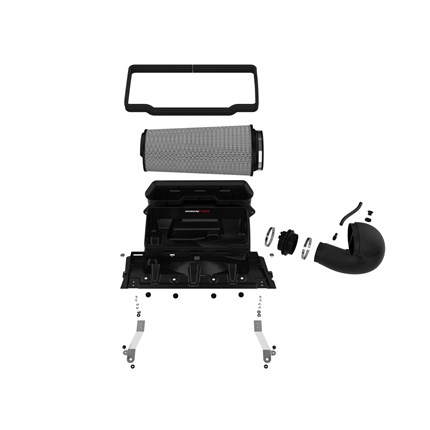 One-Piece Housing: The included massive air filter is surrounded by an open-element XLPE (cross-linked polyethylene) polymer housing that minimizes warm engine air for maximum performance. Its open design allows for easy viewing of the air filter and delivers an aggressive Air Intake sound. The housing incorporates both the factory hood air inlet scoop and the grille inlet using no additional hardware.