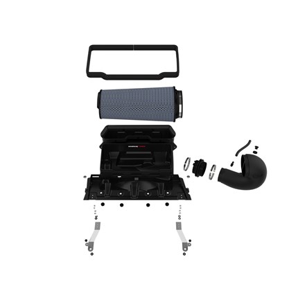 One-Piece Housing: The included massive air filter is surrounded by an open-element XLPE (cross-linked polyethylene) polymer housing that minimizes warm engine air for maximum performance. Its open design allows for easy viewing of the air filter and delivers an aggressive Air Intake sound. The housing incorporates both the factory hood air inlet scoop and the grille inlet using no additional hardware.