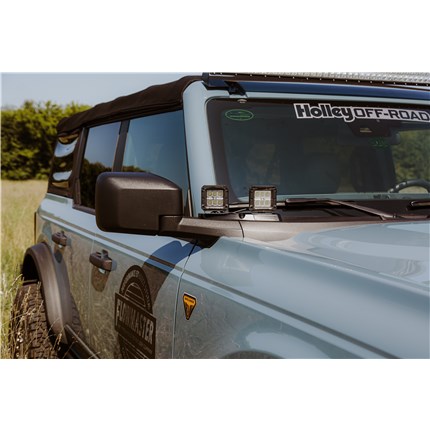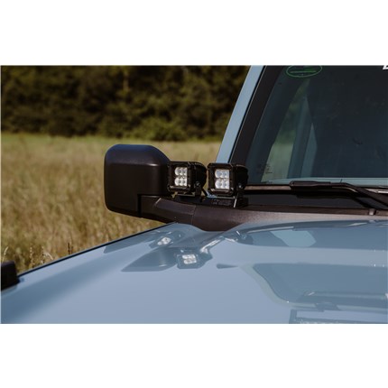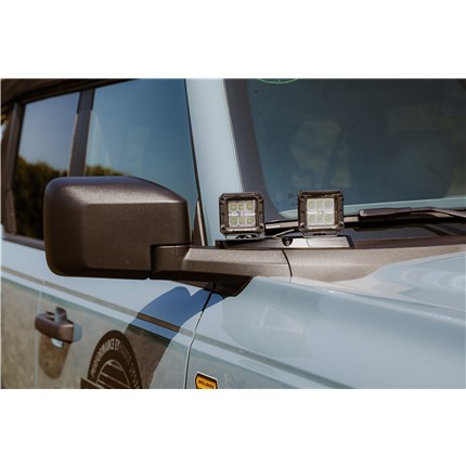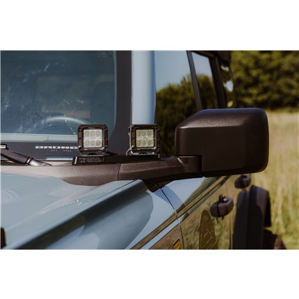 ANVIL Off-Road direct bolt-on mirror LED light mounts (A-pillar, ditch, or cowl lights). Perfect addition for your Bronco to add more light to see more out on the trails, desert, and any off-road adventure.
