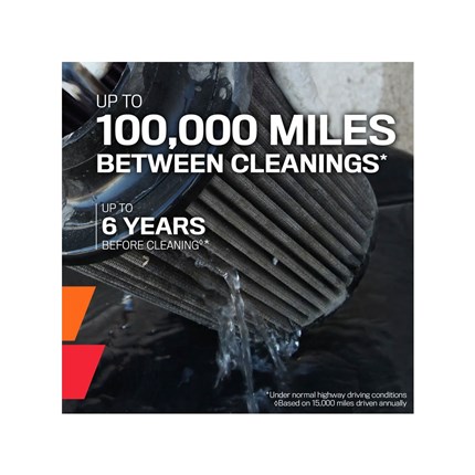 An enclosed air box design helps protect the filter and inlet air from the heat of the engine bay, and the air box lid allows for quick and easy access to the filter without tools. A high-density polyethylene (HDPE) rotationally-molded tube helps increase the volume of airflow to your engine, and provides a guaranteed increase in horsepower and torque. These systems are paired with a washable, reusable High-Flow Air Filter featuring oiled cotton filter media. The oversized, conical design of the filter allows you to go up to 100,000 miles between filter services under normal highway driving conditions. The system can typically be installed in less than 60 minutes. Some intakes are not legal for sale or use on any pollution controlled motor vehicle in California. See the product specifications for CARB status on each part for a specific vehicle.