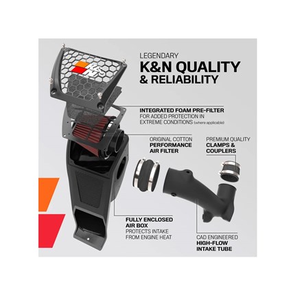 K&N 63 Series Air Charger High Flow Intake Kit Features: