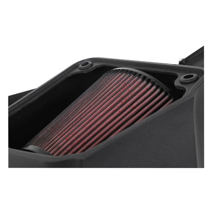 An enclosed air box design helps protect the filter and inlet air from the heat of the engine bay, and the air box lid allows for quick and easy access to the filter without tools. A high-density polyethylene (HDPE) rotationally-molded tube helps increase the volume of airflow to your engine, and provides a guaranteed increase in horsepower and torque. These systems are paired with a washable, reusable High-Flow Air Filter featuring oiled cotton filter media. The oversized, conical design of the filter allows you to go up to 100,000 miles between filter services under normal highway driving conditions. The system can typically be installed in less than 60 minutes. Some intakes are not legal for sale or use on any pollution controlled motor vehicle in California. See the product specifications for CARB status on each part for a specific vehicle.