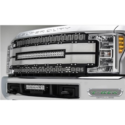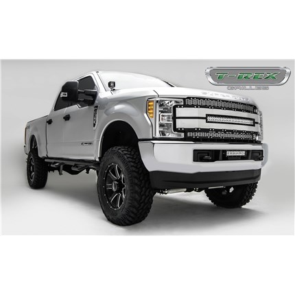 Make your 2017-2019 Ford Super Duty stand out with the T-Rex 6315485 Torch Series Brushed Black LED Grille. Known for being a world leader in aftermarket grille design, T-Rex delivers style and durability with this grille, featuring a heavy-duty black mesh surrounded by a bold, studded frame. Each grille proudly displays T-Rex's X-Metal branding and includes their patented X-Metal logo, adding a signature touch to your vehicle.