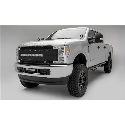 2017-2019 Super Duty Torch AL Grille, Black Mesh and Trim, 1 Pc, Replacement, Chrome Studs with (1) 30" LED, Fits Vehicles with Camera - PN #6315491