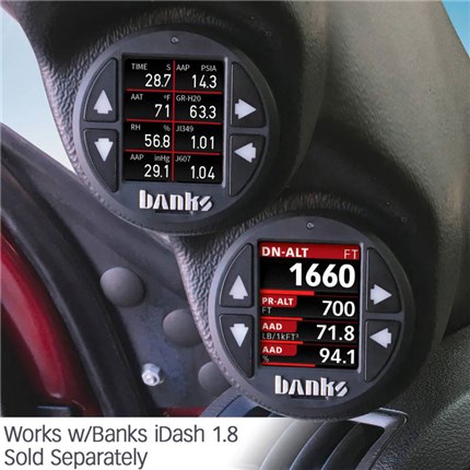 Works with the Banks iDash 1.8 Super Gauge (Sold Separately) The new AirMouse Ambient Air Density sensor module measures the power potential of air entering all naturally aspirated, turbo, and supercharged engines. The mouse shaped sensor is a rugged military-grade weather station with scientific accuracy.