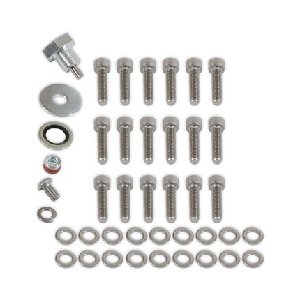 Our Hi-Tek deep transmission pans are constructed from A356-T6 aluminum and are cast with thick internal and external fins, adding additional strength and increased cooling properties. The deep pan design increases fluid capacity by 2 quarts over the stock O.E. pan. All these features combined help dissipate heat quicker netting lower transmission and fluid temperatures and prolonging the life of your transmission, transmission fluid, and corresponding components. Other features of this popular pan include a drain port with a magnetic drain plug for clean and easy servicing. Also includes a 1/8-inch NPT temperature sensor port for easily adding a temp gauge for monitoring transmission temperatures while daily driving, towing, or racing. Includes detailed instructions with all necessary hardware for an easy at-home installation. Note: 10R80 transmissions do not come with a dipstick from the factory to check the fluid level. As a solution, B&M offers an optional locking dipstick part #22200 to measure transmission fluid level.