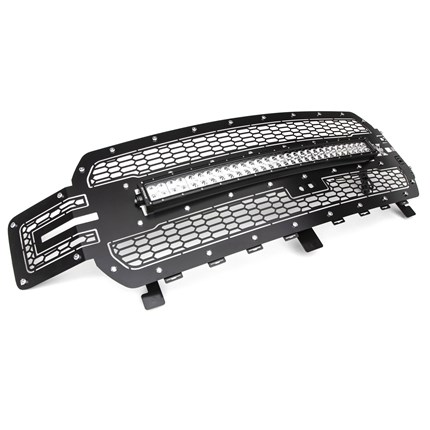 2018-2020 F-150 Laser Torch Grille, Black, 1 Pc, Replacement, Chrome Studs with 30 Inch LED, Fits Vehicles with Camera - PN #7315751